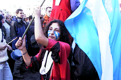 PERSBERICHT 03-02-2002 COMITE VERHEUGD OVER GROTE OPKOMST WITTE PLEIN Comite Het Witte Plein is verheugd over de grote opkomst zaterdag op de manifestatie Het Witte Plein op het Koningsplein. Bij de doorkomst van de Gouden Koets langs het plein waren ruim 1500 demonstranten aanwezig op het plein. De demonstranten lieten een luidruchtig protest horen door naar Argentijns voorbeeld op potten en pannen te slaan. Het comite noemt het aantal demonstranten op Het Witte Plein opvallend groot in vergelijking tot het aantal oranjefans in de stad (de NS heeft zaterdag maar 16.000 mensen naar Amsterdam vervoerd). 2000 Euro voor de Dwaze Moeders Het Witte Plein-protest is uitgegroeid tot een van de grootste anti-monarchistische demonstraties van de afgelopen jaren. Op het Witte Plein was gisteren van 10 uur in de ochtend tot 3 uur 's middags een programma met sprekers en muziek. In een grote tent was een informatiemarkt ingericht. Op het plein werd ook geld ingezameld voor het Nationaal Geschenk Mensenrechten Argentinie. In totaal werd zo'n 2000 Euro opgehaald voor projecten in Argentinie die verwand zijn met dat van de Dwaze Moeders. De opbrengst kwam ondermeer uit de verkoop van speciaal gemaakte lithografie-afdrukken die kunstenaar Aat Veldhoen gisteren verkocht op het plein.